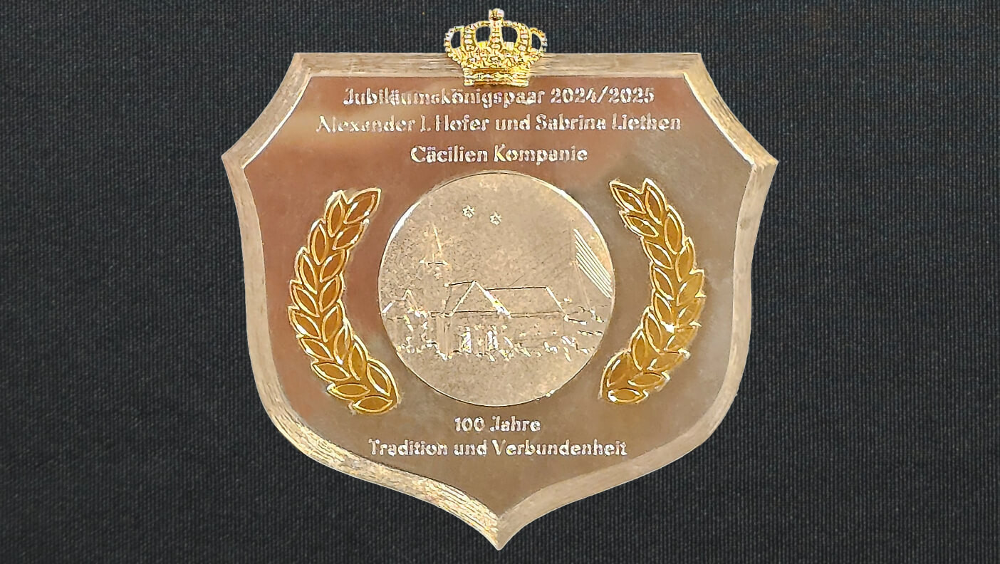 Sehr beachtenswert sind ebenfalls die Überlegungen unserer Regimentskönige zur Ausführung ihrer Plakette – auch davon können Sie sich hier exemplarisch ein Bild machen.
