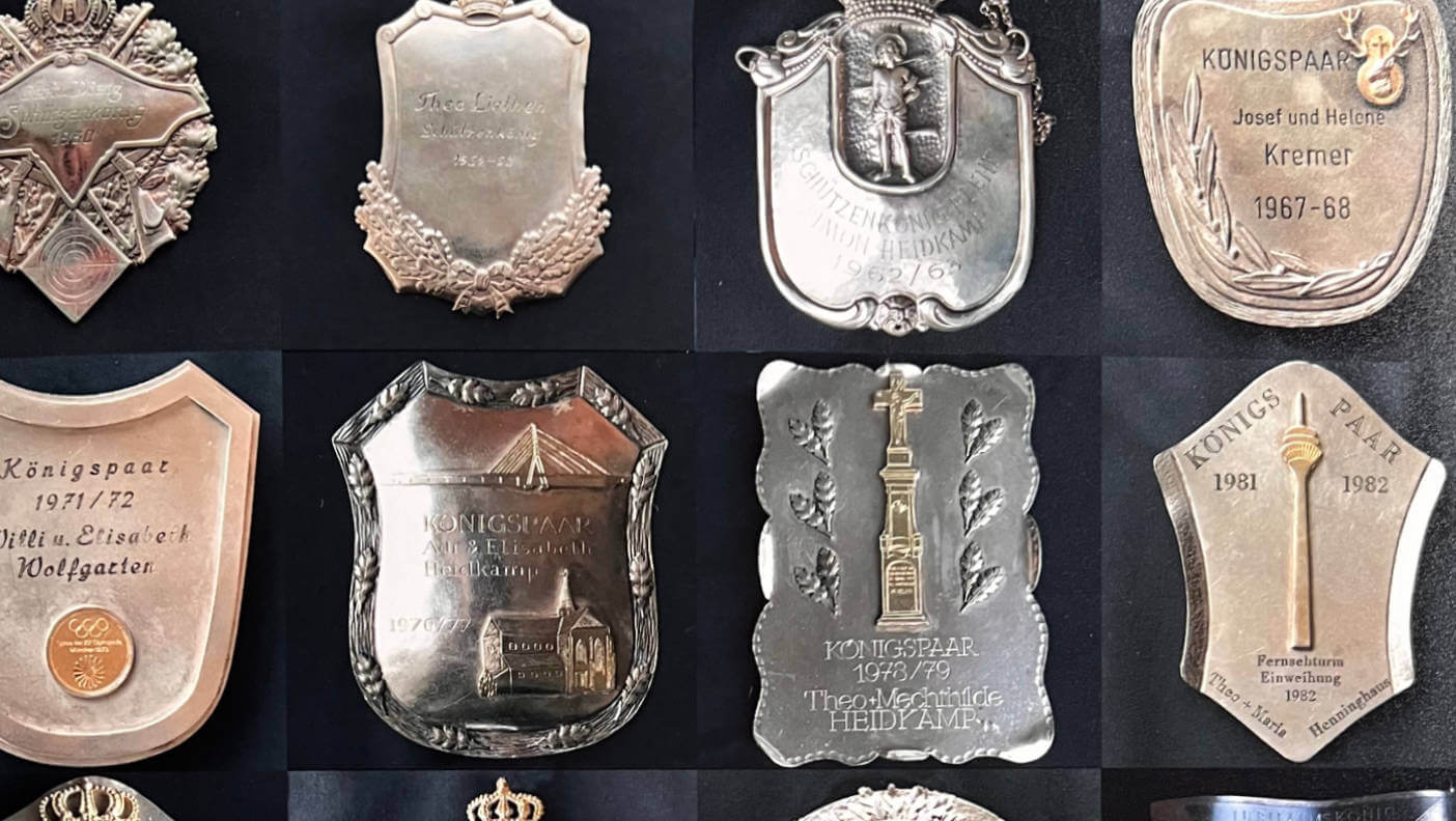 Die Königskette, an der sich jeder Schützenkönig mit einer eigens gestalteten Silberplakette verewigt, wiegt rund 20 Kilogramm und sie hat – damit sie nicht untragbar wird – eine maximale Länge von bis zu zwei Metern.